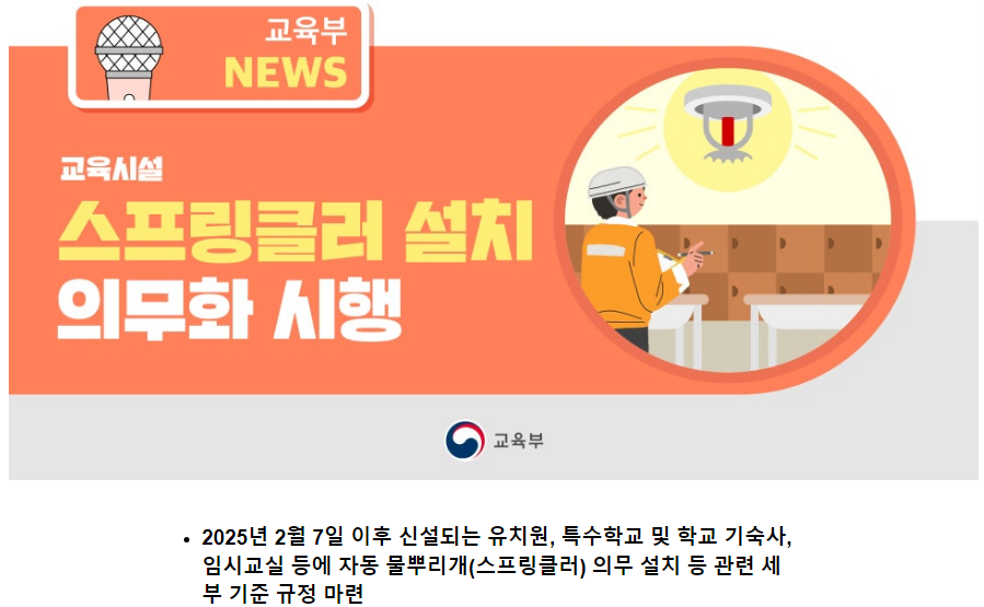 [교육부] 교육시설, 스프링클러 설치 의무화 시행